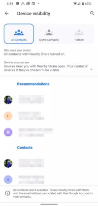 La modalità di comunicazione Nearby Share presuppone che ci siano altri dispositivi abilitati allo stesso servizio: anche in questo contesto è possibile decidere manualmente la visibilità rispetto agli altri utenti che usano Nearby Share.