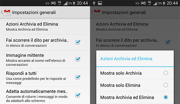 In questo modo potrete nuovamente cancellare al volo le vostre email su Android anche con il nuovo Gmail 4.5.