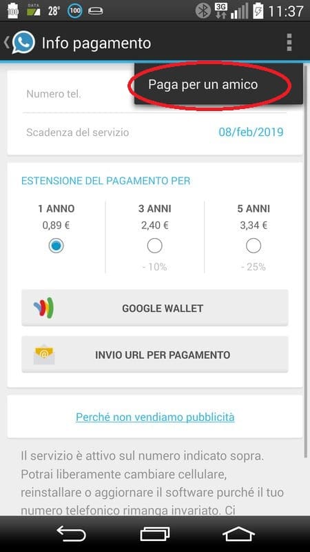 Anche io uso WhatsApp ed ora ho l'abbonamento da 5 anni e quindi il mio non lo rinnovo, ma spesso tanti amici mi chiedono di rinnovarglielo ed ogni volta sono io a pagare per loro quando la procedura da seguire è davvero banale.