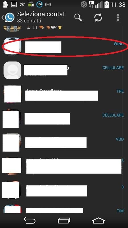 Ora dovremo andare a selezionare dalla rubrica il contatto a cui vogliamo rinnovare WhatsApp e cliccarci su.