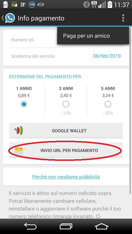Come rinnovare WhatsApp con PayPal, PostePay, SuperFlash o altra carta o Pagare WhatsApp ad un Amico [Guida]