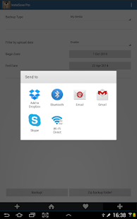 - Send your zip file to Dropbox, Email, Bluetooth, etc with a tap