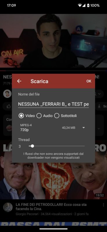 Da questo momento ti basterà premere il pulsante di download che compare in sovra-impressione mentre guardi un video con YouTube Revanced per fare comparire la finestra di download, che ti permetterà di scaricare video da YouTube Revanced in modo facile e veloce.