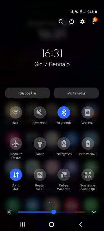 In alternativa, per spegnere il tuo Samsung Galaxy A51 ti basterà trascinare la tendina delle notifiche verso il basso (completamente, in modo da espanderla tutta).