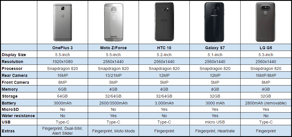 Confronto tra OnePlus 3, Galaxy S7, Moto Z, HTC 10, LG G5. Confronto tra i migliori smartphone: chi vince tra OnePlus 3, Galaxy S7, Moto Z, HTC 10, LG G5?
