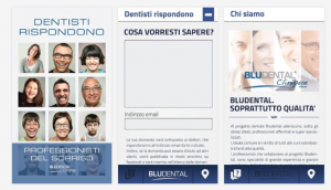 “Dentisti Rispondono” è il servizio di assistenza gratuito di Bludental Clinique, con cui gli utenti potranno avere a disposizione una consulenza odontoiatrica immediata. Disponibile gratuitamente per Android, è un’app risolutiva e di grande aiuto. Basta scrivere l’informazione che si vuole avere, inserire il nickname e il proprio indirizzo email e inviare la domanda: un team di dentisti specializzati risponderà nel minor tempo possibile direttamente all’indirizzo email indicato.