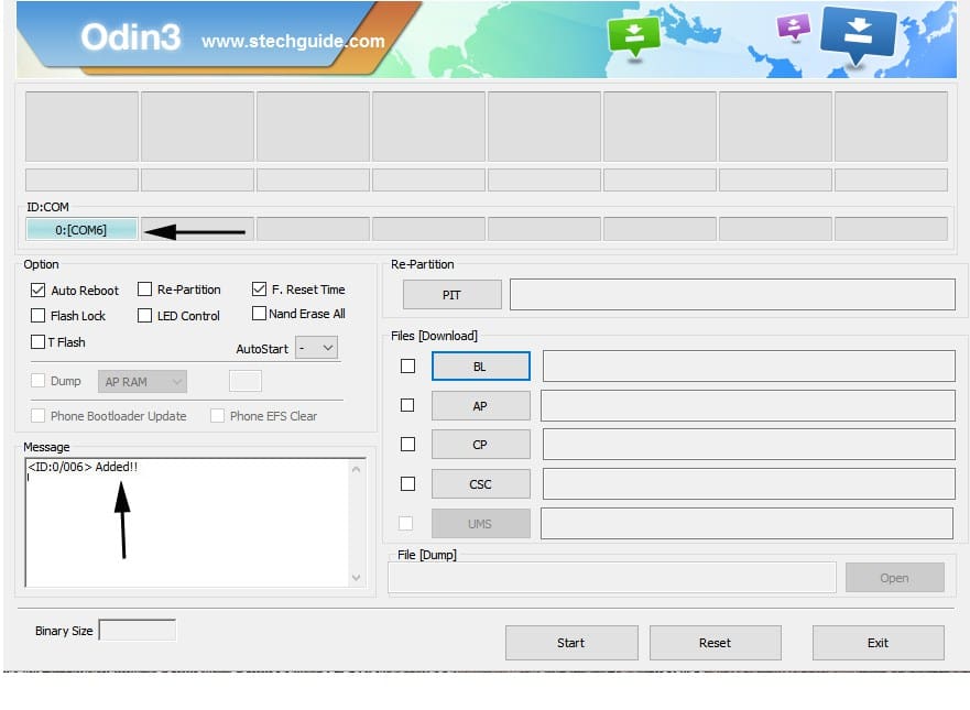 Se invece è tutto regolare (come da immagine), significa che il Galaxy S7 è riconosciuto correttamente da Odin e puoi procedere.