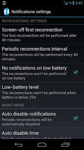 Note: to maximize battery saving set higher re-connection interval or totally disable it (you will lose notification)