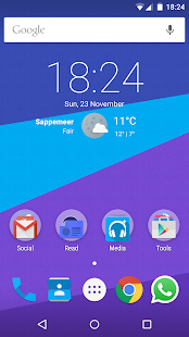Questo tema per Chronus rappresenta, dal punto di vista grafico, l'unione tra la grafica flat e quella Material Design di Android Lollipop 5.0 e a me piace davvero tanto. Ha una grafica minimal, che al contempo è colorata e allegra, perfetta per ravvivare la home di Android. Un tema da provare assolutamente!