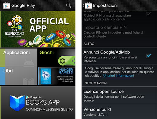 Google Play Store 3.7.11 da Android 4.1 Jelly Bean