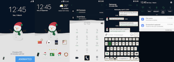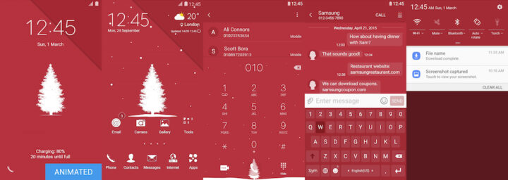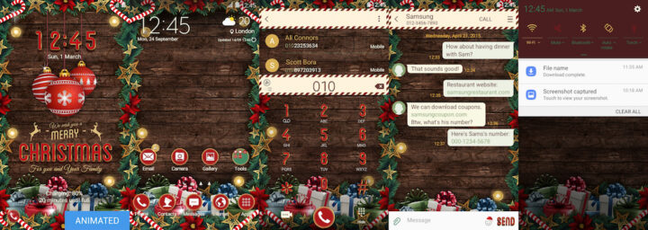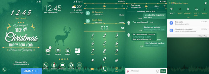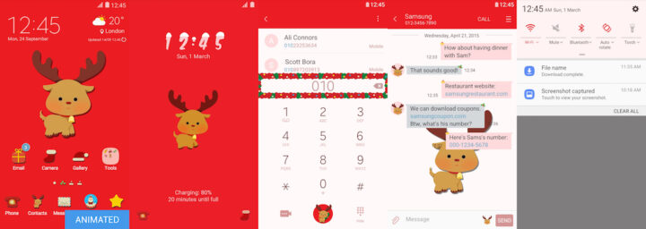 Come potete notare, molti di questi temi appena rilasciati da Samsung sono dedicati al Natale. Troviamo dunque sfondi e wallpaper con renne, pupazzi di neve e addobbi natalizi,