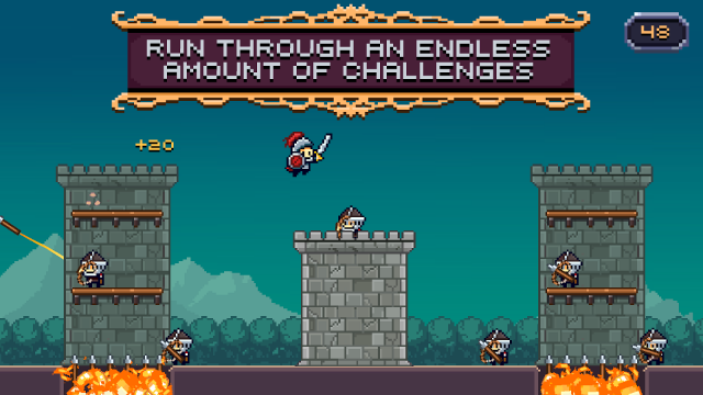 Dashy Knight è la combinazione perfetta tra un gioco che crea dipendenza, controlli semplici e grafica nostalgica. Sarete un cavaliere ad 8-bit che dovrà correre costantemente sullo schermo tra torri, castelli e arcieri. Per evitare gli attacchi dei nemici e distruggere gli ostacoli potrete saltare o schiantarvi. Il tempo è la chiave di tutto: una mossa falsa e andrete incontro a morte certa. Sopravvivete più che potete per totalizzare un punteggio più elevato.