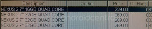 L'immagine che trovate ad inizio articolo arriva dall’inventario di un ignoto rivenditore americano e mostra i probabili prezzi del nuovo Nexus 7 (o Nexus 2 7”, come viene chiamato in rete). Ovviamente si tratta di rumor non confermati, che comunque ci consentono di iniziare a fare qualche ipotesi sul prezzo di vendita del nuovo tablet di Google.