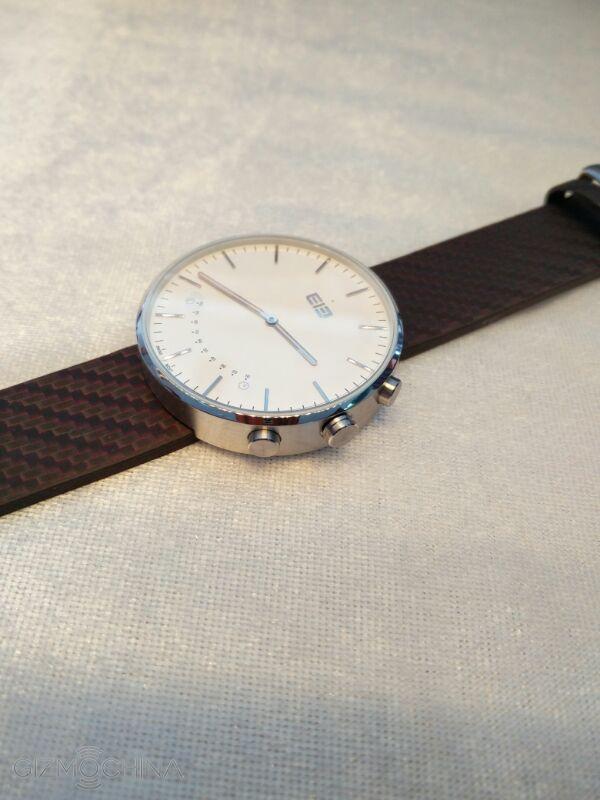 E' spesso 10,30 millimetri ed integra un funzionamento Swiss Ronda Movement 762. La batteria da 210mAh dovrebbe garantire una buona autonomia.