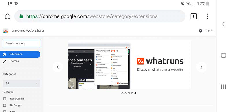 - andare sul Chrome Web Store (peccato che l'interfaccia non sia ottimizzata per mobile, per una migliore esperienza consiglio di usare lo smartphone in orizzontale)
