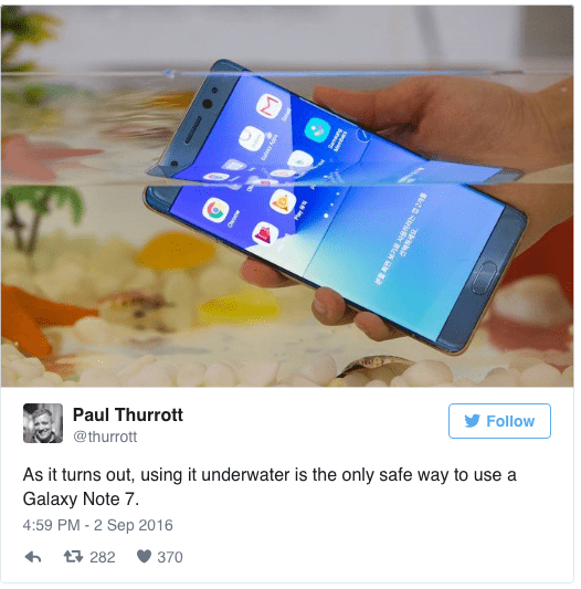 Ma, mentre Samsung stava provando a scoprire la causa dell'esplosione dei suoi Galaxy Note 7 (che ancora non è stata identificata dagli ingegneri dell'azienda), gli utenti in giro per il mondo si dilettavano a scherzare sull'argomento, realizzando dei divertenti Meme che hanno prontamente condiviso online.