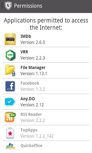 GData AntiVirus Free: Mostra tutte le Autorizzazioni delle Applicazioni Android Installate