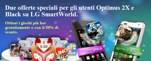 LG ha comunicato questo pomeriggio, sulla sua pagina FaceBook ufficiale, l'inizio di una nuova promozione riservata ai possessori di LG Optimus Dual e Optimus Black. Gli utenti, grazie a questa promo, potranno scaricare giochi gratuiti o con un forte sconto dall’applicazione SmartWorld.