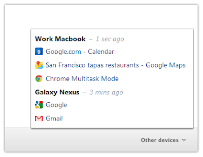 Con questa nuova release di Google Chrome, dunque, è stata finalmente abilitata la funzione di sincronizzazione delle schede aperte, che consente di visualizzare su smartphone/tablet Android (solo ICS per ora) i contenuti che abbiamo aperto sul browser del PC. Si tratta di una utilissima funzionalità, che ci consentirà di proseguire il nostro lavoro in qualsiasi circostanza nel caso in cui dovessimo allontanarci improvvisamente dal nostro PC.