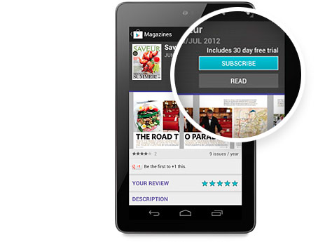 Su Google Play puoi acquistare singoli numeri delle tue riviste preferite o abbonarti per risparmiare. Se ti abboni a determinate riviste su Google Play ricevi una versione di prova gratuita di 30 giorni.