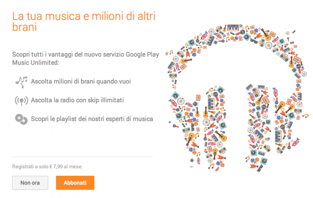 Google Play Music Unlimited proposto ancora a 7,99€/mese