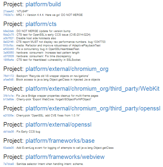 Android 4.4.4 è stato comunque già inserito nell’AOSP e così possiamo dare uno sguardo al changelog completo, che indica solamente tante correzioni relative ad alcune vulnerabilità, come sottolineato dall’operatore statunitense.