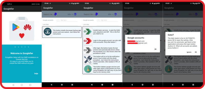 Si, proprio così: se in passato era necessario seguire guide lunghe e complesse, spesso non funzionanti, per avere tutte le app e i servizi di Google su telefoni Honor e Huawei, grazie a Googlefier le cose cambiano nettamente in positivo!