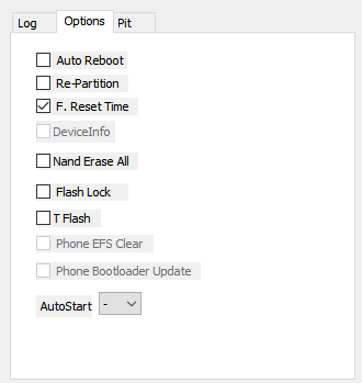 Step 7. Assicurati che le voci Re-partition e Auto Reboot NON siano selezionate nella tab Opzioni di ODIN