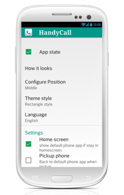 Segnalo anche che, dalle impostazioni di HandyCall, potrete scegliere tra due temi (circolare o quadrato) ed anche di stabilire la trasparenza e le dimensioni del popup.
