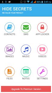 Hide Secrets Premium è un programma che permette di proteggere e nascondere qualsiasi cosa dal vostro smartphone o tablet Android. Hide Secrets Premium permette di nascondere foto, contatti, registro chiamate, SMS, video, immagini, file di qualsiasi tipo; nello stesso tempo, però, Hide Secrets Premium permette di bloccare e proteggere le applicazioni con una password o un codice, in modo che nessuno possa aprirle senza il vostro permesso.