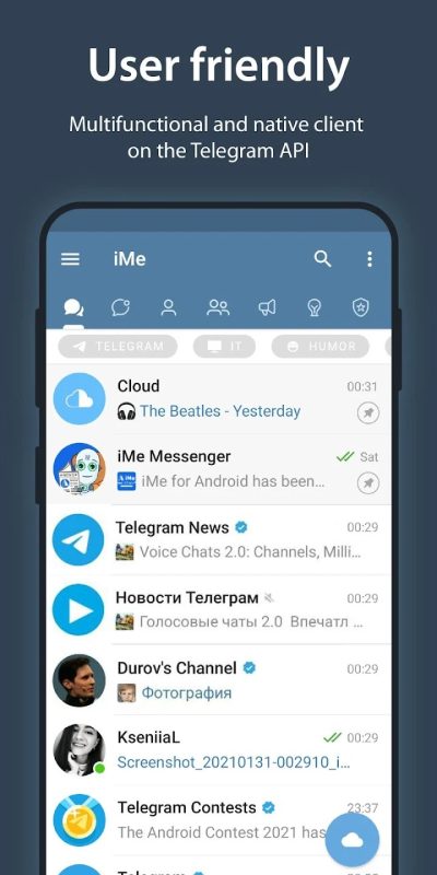 iMe Messenger è un client Telegram versatile che offre diverse funzionalità aggiuntive.