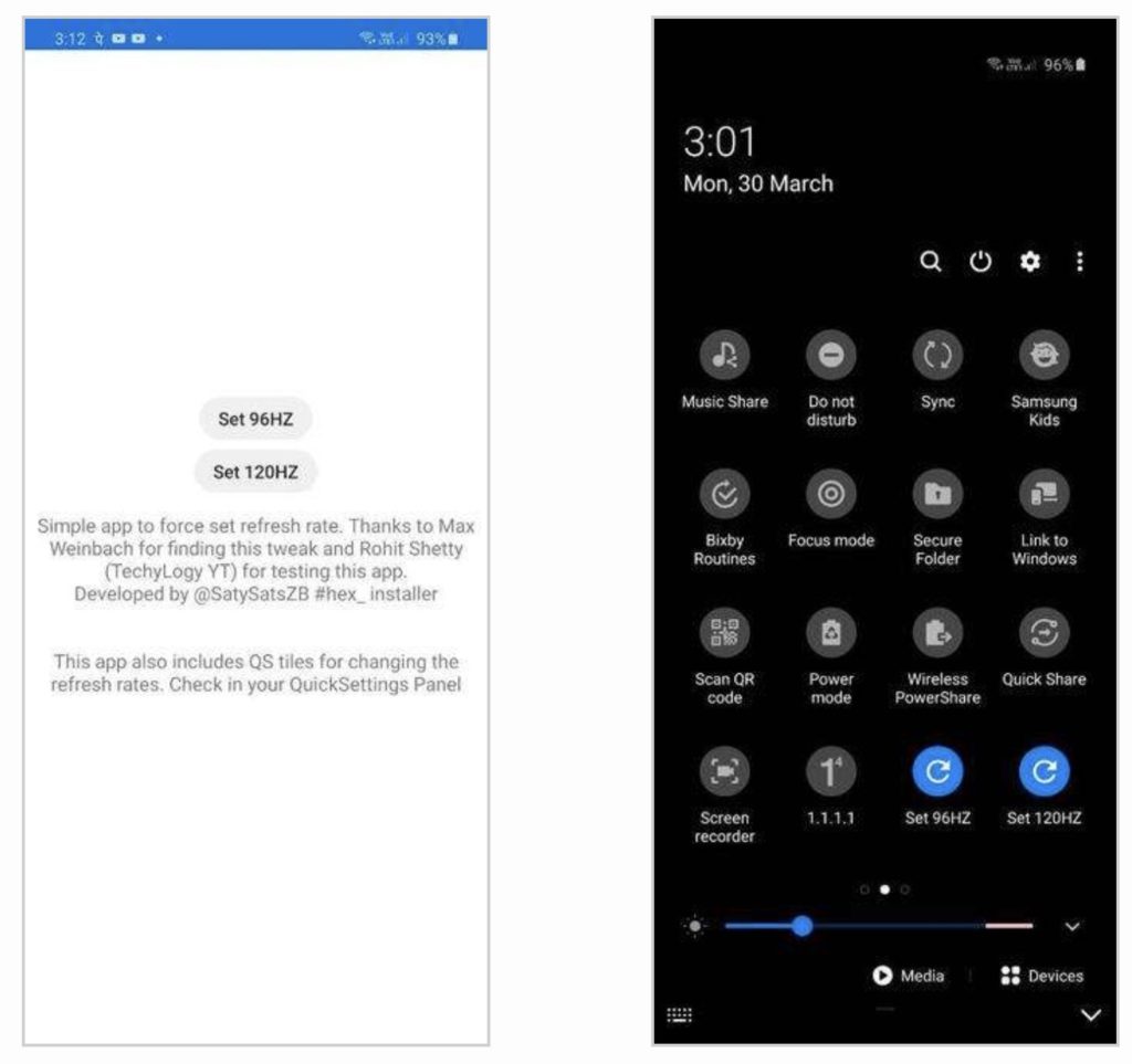 Poco fa, infatti, è stato rilasciato un programma gratuito che in un click permette di impostare lo schermo del Galaxy S20 a 96 Hz.
