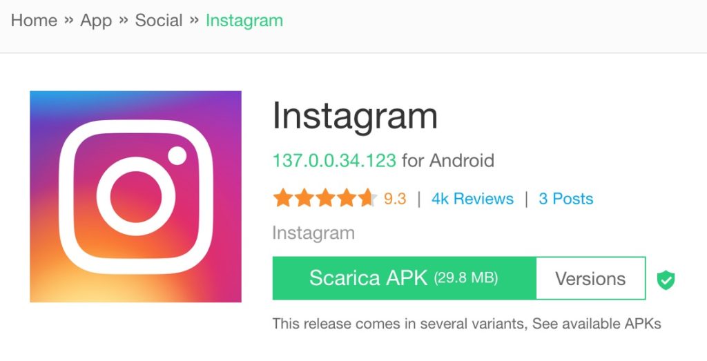 SOLUZIONE 1 - Download APK Instagram