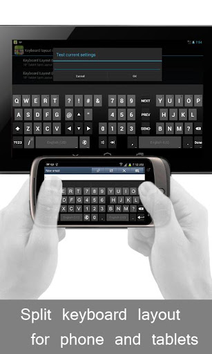 Infine, segnalo che Jelly Bean Keyboard PRO risulta particolarmente adatta per i tablet, visto che può essere sdoppiata e suddivisa in più parti in modo da risultare molto comoda anche quando andremo a digitare in landscape tenendo in mano il tablet (vedi immagini a seguire per chiarimenti).