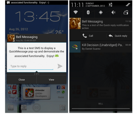 Messaggi pop-up e risposte rapide nelle notifiche in arrivo su CyanogenMod 10