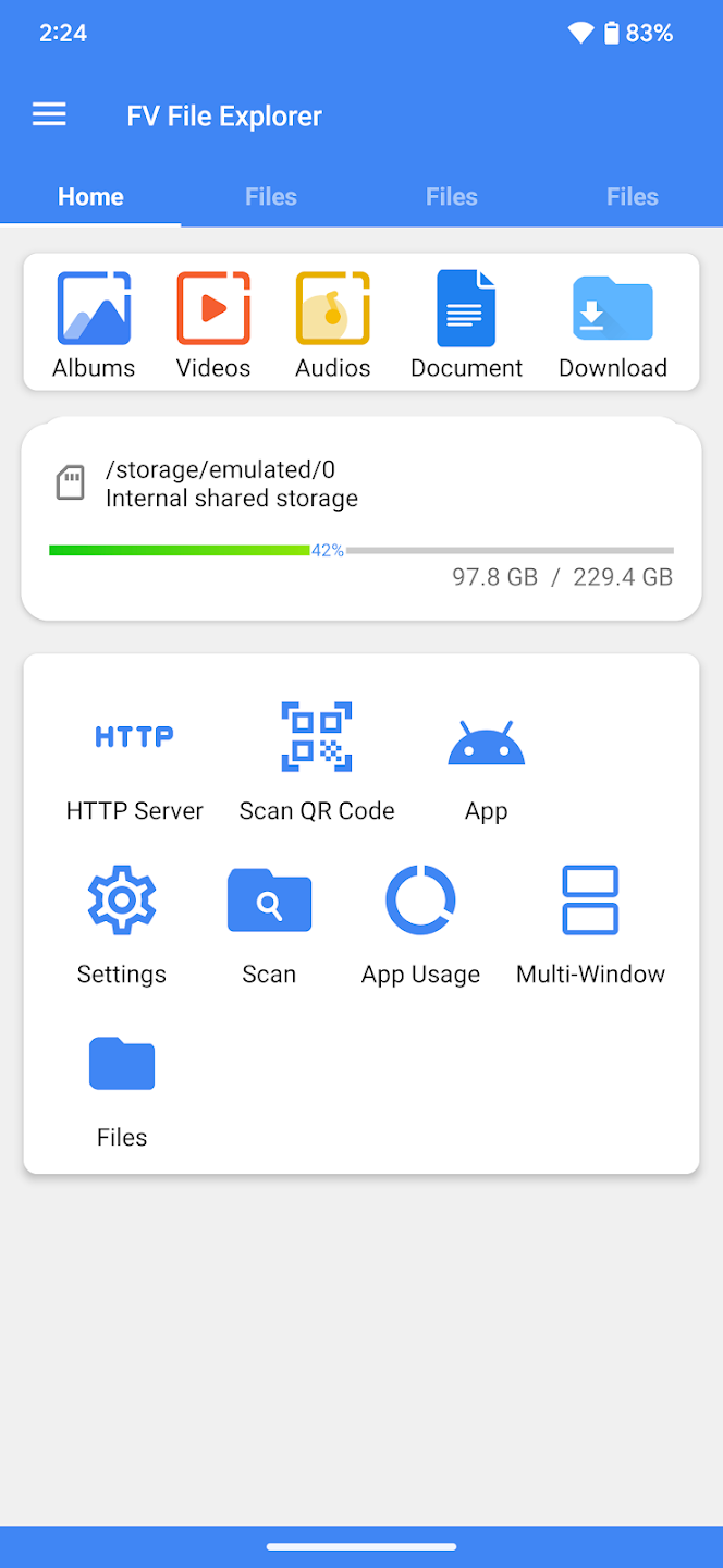 Non è tanto un File manager, quanto un programma comodo per liberare spazio, memoria interna, file duplicati e altro ancora. Offre anche funzionalità da File manager puro, ma è più limitato da questo punto di vista rispetto ad altre app in elenco.