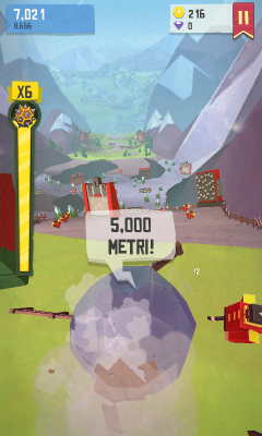 Con la vostra roccia dovrete cercare di distruggere tutto quello che troverete sul vostro cammino: uomini, alberi, case, staccionate e altro ancora. Ovviamente, più cose demolirete, più punti porterete a casa,; con i punti potrete poi sbloccare nuovi elementi da distruggere (capanne, animali particolari, strutture varie e persino degli Yeti). Durante la corsa potrete conquistare anche delle monete dorate che vi permetterà di comprare power-up che vi consentiranno di aumentare l’estensione dei salti, la velocità della sterzata ed anche la durata dell’invincibilità.