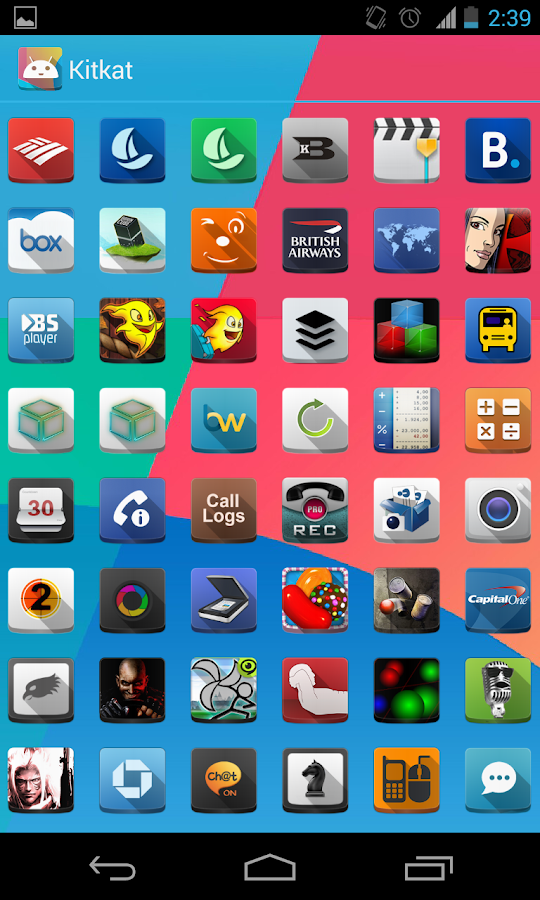 Come potete notare, le icone sono veramente curate e ben fatte, realizzate con uno stile veramente carino, che riprende un pò quello di KitKat (da qui il nome del tema), ma con un effetto 3D e un'ombra davvero interessante, che conferisce profondità e spazio alle singole icone. Personalmente devo dire che questo tema per Android mi piace parecchio, tanto che l'ho subito installato sul mio Galaxy S4 Mini.