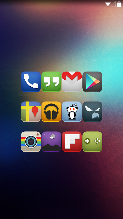 In questo caso lo stile vibrante e colorato, molto acceso ed eccentrico, per dare un tocco di fantasia e vitalità al vostro smartphone. Lo sviluppatore ha creato icone personalizzate per quasi tutti i programmi che andrete a scaricare. Diciamo che questo tema non segue le linee guida di Holo, ma in generale offre icone personalizzate davvero belle e carine, con un design squadrato e che rappresenta un mix tra il classico e il moderno. Se anche voi amate personalizzare a fondo il vostro smartphone/tablet Android e usate un launcher alternativo, dovete assolutamente provare il tema di icone Vibe.