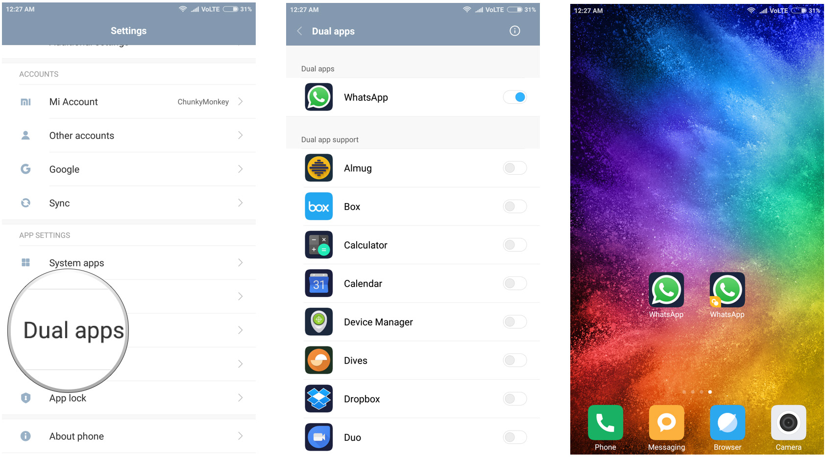 Questa funzione è fantastica: permette di "duplicare" le applicazioni in modo da farne una copia uguale al 100% da usare magari con un altro account. Potrai, ad esempio, avere 2 versioni di WhatsApp, 2 versioni di Facebook o di qualsiasi altro programma installato sul tuo smartphone, in modo da avviare l'app con due account diversi già configurati. Una funzione utilissima per usare 2 account WhatsApp sullo stesso smartphone, oppure per usare il multi-account in tutti quei programmi che non lo supportano.