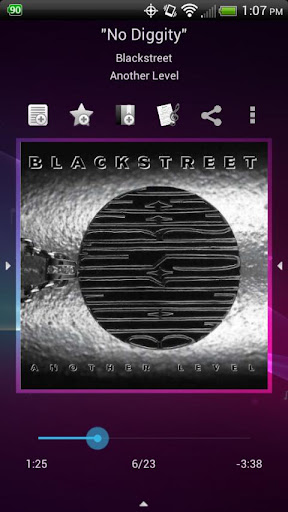- 5 customizable quick shortcuts are available on the Now Playing screen. Assign various functions to each one included Add to Playlist, Save bookmark, Lyrics, Share song, View YouTube video, and much more.