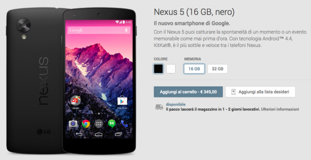 Nexus 5 da 16 GB nero disponibile nel Play Store, spedizione in 1-2 giorni lavorativiBrevissima news per segnalare a tutti gli utenti di YourLifeUpdated che il Nexus 5 da 16 GB è nuovamente disponibil...