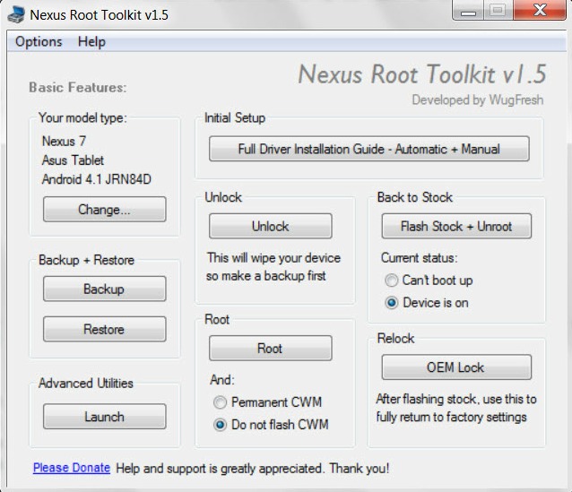 Grazie al Nexus Root Toolkit, giunto alle versione 1.5 potrete sbloccare il Bootloader, effettuare il ROOT, Flashare ROM e altro non solo sul Nexus 7 ma su tutti i dispositivi della serie Nexus come Nexus S e Galaxy Nexus il tutto senza installare Driver e senza utilizzare l'SDK di Android.