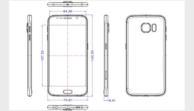 Quello che subito colpisce è lo spessore estremamente ridotto del dispositivo, pari a soli 6,91 mm (quello del Galaxy S5 è di 8,1 mm). Rispetto al precedente modello anche la larghezza risulta minore (70,81 mm contro i 72,5 mm del Galaxy S5), mentre la lunghezza aumenta di 1,3 mm (143,3 mm contro i 142 mm del Galaxy S5). Da notare inoltre il tasto home centrale, meno largo ma più spesso probabilmente a causa della nuova tecnologia del sensore per le impronte.