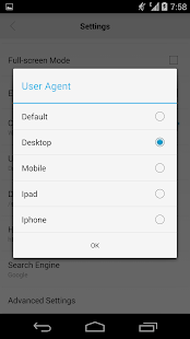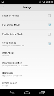 Inoltre OS 7 browser supporta la visualizzazione desktop e il FlashPlayer di Adobe: questo significa che permette di aprire e avviare praticamente qualsiasi sito internet senza blocchi, problemi o limitazioni. La navigazione, come detto, è sempre veloce, immediata e piacevole. OS 7 browser supporta anche la modalità fullscreen per sfruttare tutto lo schermo del vostro Android.