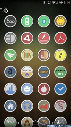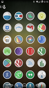 Spectra Icon Pack è indubbiamente un pacchetto di icone molto bello per Android. Le icone sono circolari e in stile flat: sono sicuramente molto belle e originali e apprezzo particolarmente il cerchio bianco che circonda ogni icona e permette di "staccarla" dallo sfondo dello schermo. Un tema davvero carino.