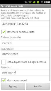 Potrete aggiungere in modo facile e immediato tutte le vostre carte prepagate, salvare nome utente e password, gestire al volo le proprie carte e vedere le spese e i saldi residui. Comodissimo!