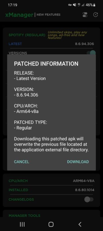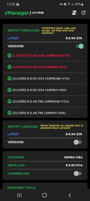 xManager è un programam totalmente gratuito che permette di scaricare tutte le versioni aggiornate di Spotify craccato per Android in un click.