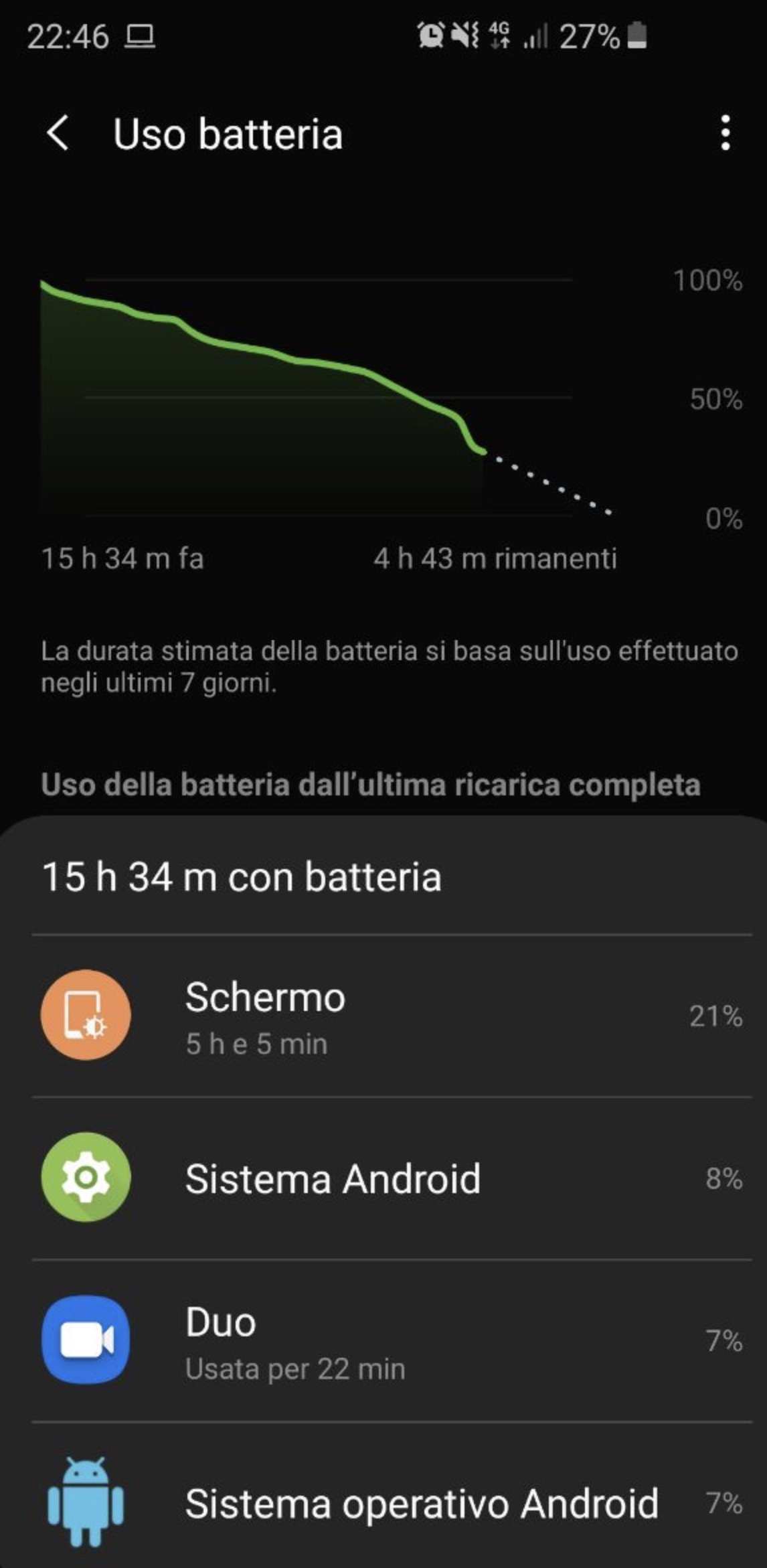 Solitamente con Galaxy S10e non riuscivo a superare le 3 ore di schermo acceso.