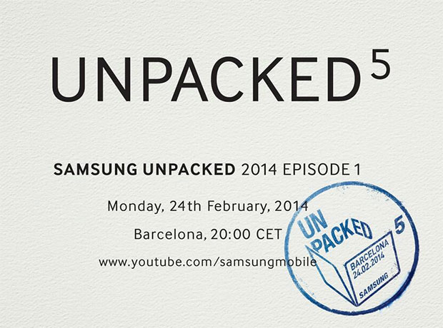 Samsung ha ufficializzato durante la notte la sua conferenza stampa al MWC 2014. Si chiamerà Unpacked 5 e si terrà a Barcellona il 24 febbraio alle 20.
